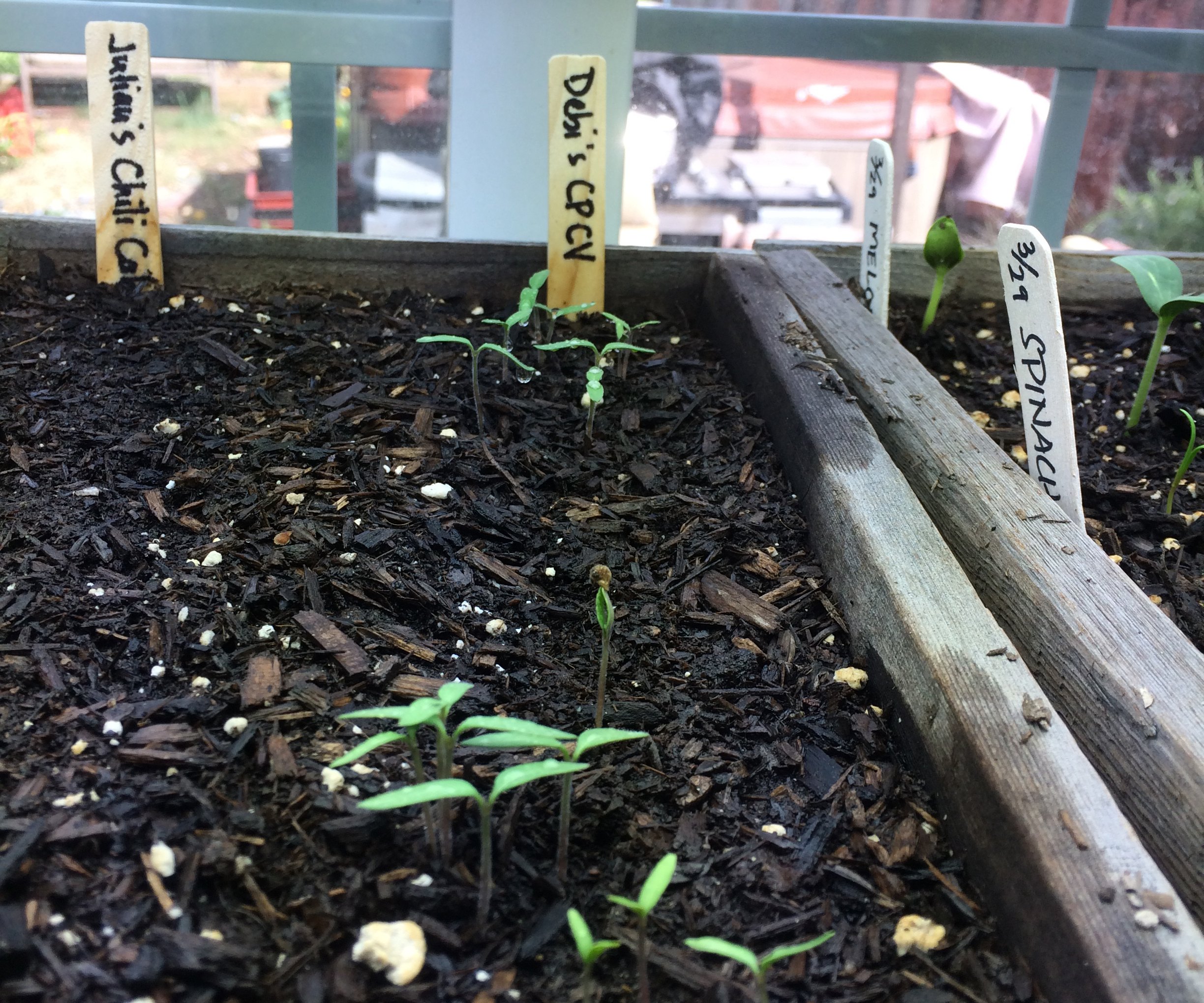 Tomato Seedlings#5. Start All Your Seeds Inside and Transplant. I know beans and squash and melons don’t care for being transplanted, but it is so much more efficient to water a small flat or a tray of seed starts than it is to water a whole bed with only a dozen or so plants coming up in it. And the even temperature and protection from wind inside the house will also help. I move peas and beans outside as soon as they have true leaves because their roots quickly extend through the bottom of even my deepest redwood flats. Once you have seedlings outside and are watering anyway, you could seed some companion lettuce or other greens nearby to germinate in the moisture available from around the seedlings.
