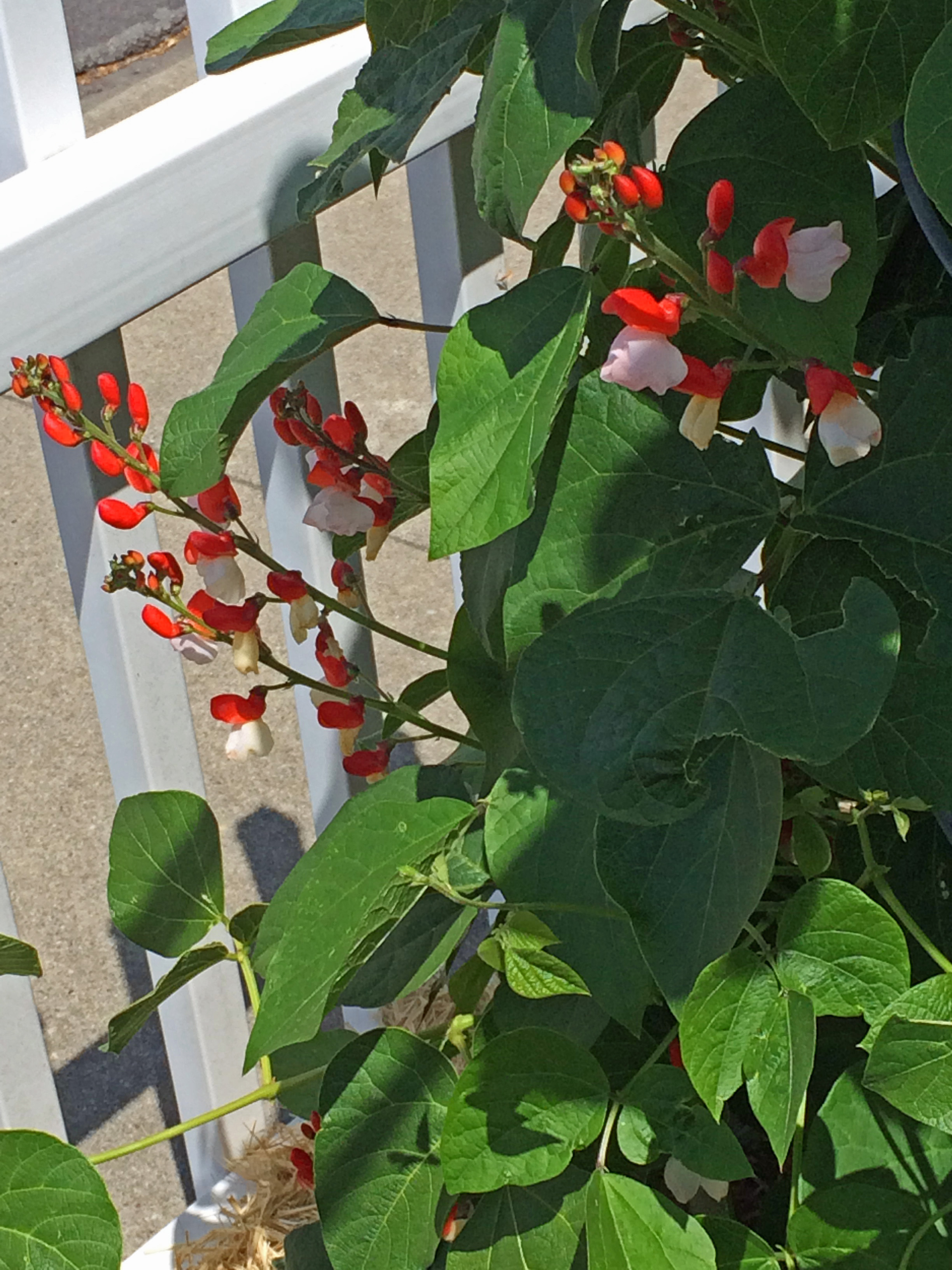 Another crop doing especially well this year is the runner beans. Runner beans are happily perennial in my climate, but they don’t last forever. Most years they all die back to the roots for the winter and in the spring it’s normal for a Front Runnersfew not to regrow. I don’t have them tagged by year, so I can’t tell you what their life-span should be, but under my high-stress growing conditions I’m pretty thrilled with the return rate. This year they were especially early, growing new vines and leaves by early April. And now, in spite of the unusually cool spring temperatures and cloudy (but rainless!!) days, they are beginning to flower. This year I have added in additional patches of ‘White Romanian’ runner beans, which I understand will have fully white flowers, instead of the lovely, hummingbird-attracting plain-red, red-and-white, or red-and-pink flowers most of my other beans grow. I like runner beans for their usefulness at all stages of bean production, their beautiful flowers, and the big, fat dry beans they give me for chili or soups all winter. If they are also able to produce in spite of the lack of moisture I will have just the excuse I need to collect even more of them. ;-)