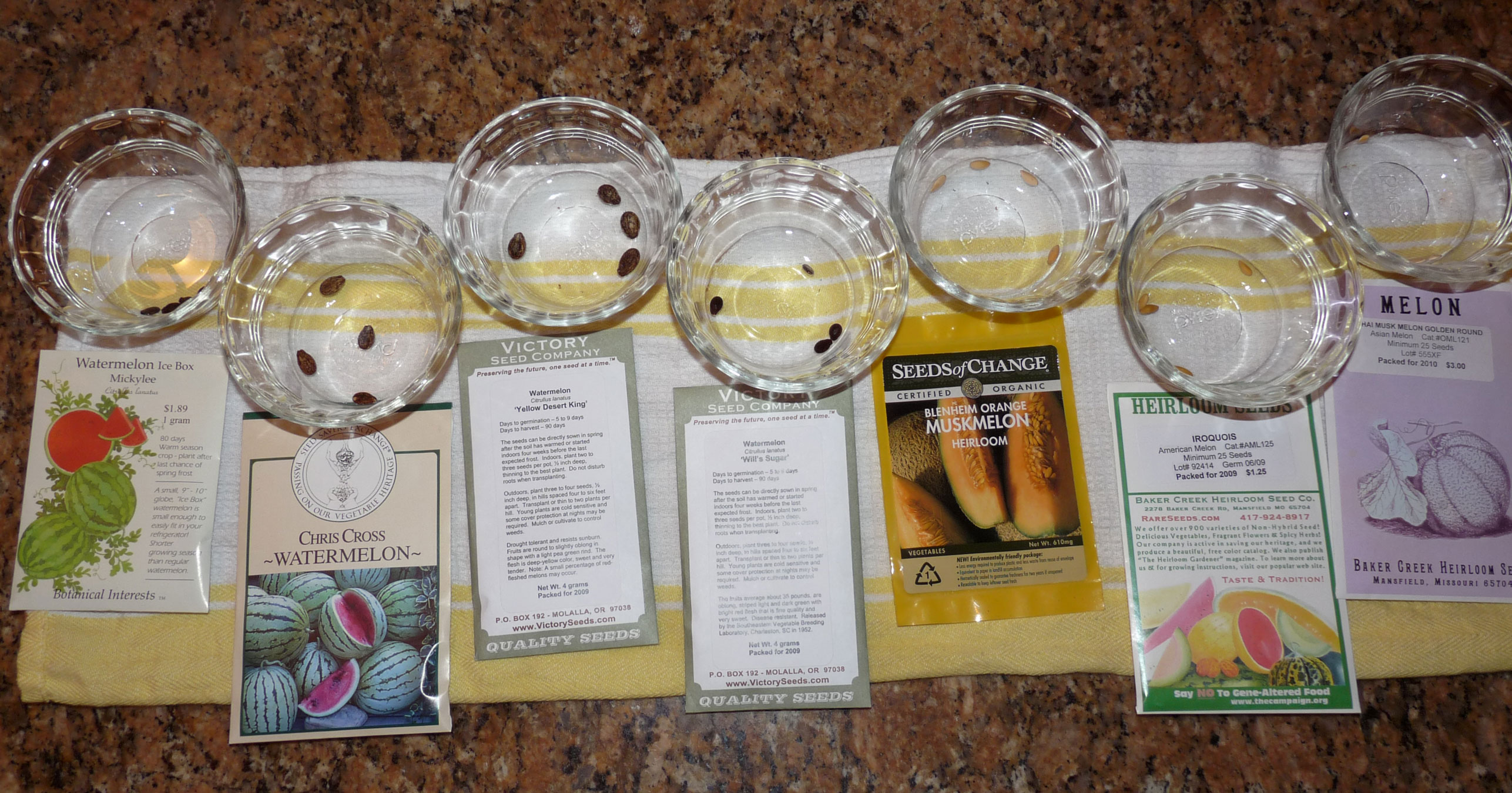 I don’t know how much the phase of the moon matters to the melon seeds–there seems to be some actual science on it, but not much in the way of conclusions. But I do know that melons like compost, so we’ll be digging in a 2″-3″ layer of compost mixed with our own earthworm castings where the melons will be growing. And, just in case it really is too early to be planting melon seeds outside, I think I will start half the seeds from each variety indoors, just in case. We also plan to start another group of these same seeds at the end of April so that we can compare the plantings.