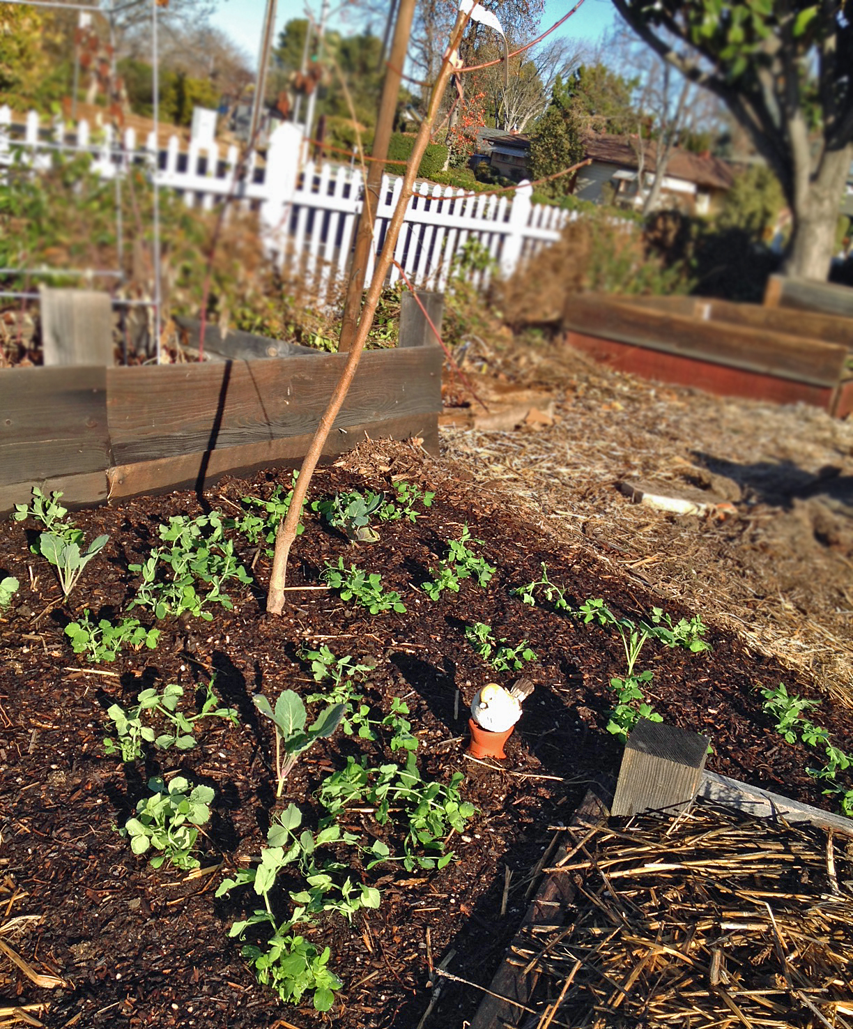 #5. Start All Your Seeds Inside and Transplant. I know beans and squash and melons don’t care for being transplanted, but it is so much more efficient to water a small flat or a tray of seed starts than it is to water a whole bed with only a dozen or so plants coming up in it. And the even temperature and protection from wind inside the house will also help. I move peas and beans outside as soon as they have true leaves because their roots quickly extend through the bottom of even my deepest redwood flats. Once you have seedlings outside and are watering anyway, you could seed some companion lettuce or other greens nearby to germinate in the moisture available from around the seedlings.