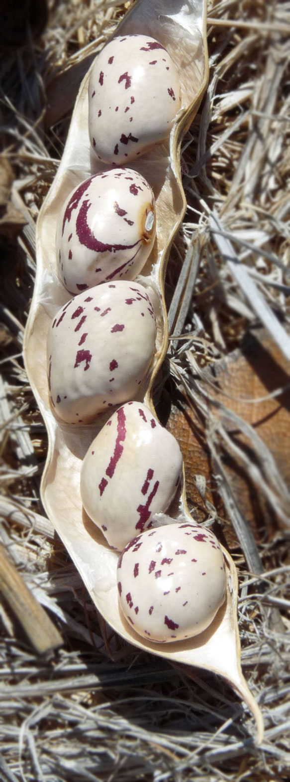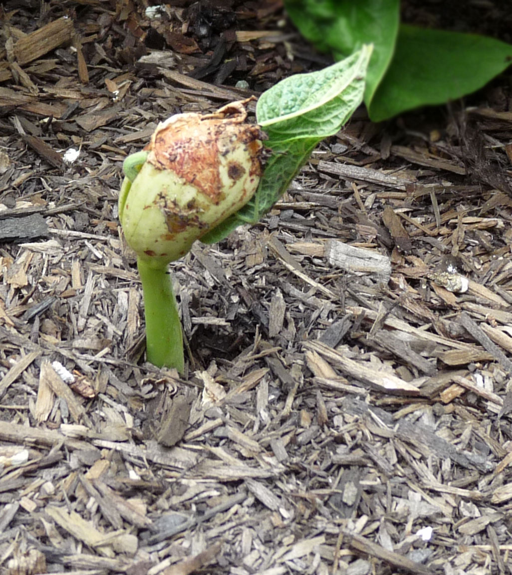In each of the beds 8 of the 10 seeds I planted germinated over a span of 12 days or so, The young plants did well in both beds, though the Soil Reef beans seemed perhaps a bit greener than the untreated bed. Then it got really hot and dry and I got very busy with work and couldn’t water nearly as much as I wanted to.