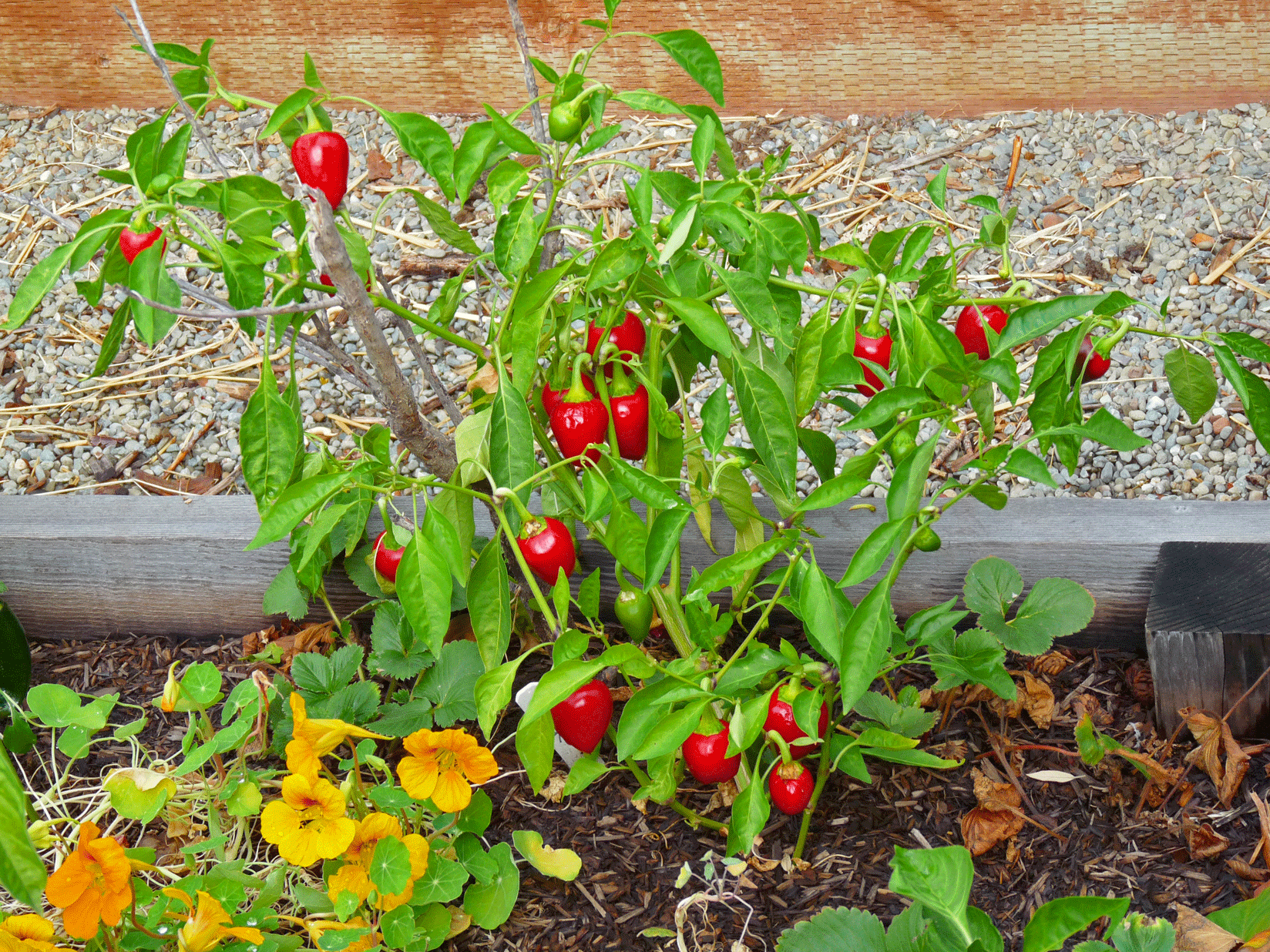 This pepper is intended as a perennial. Trade Winds Fruit calls this pepper, “a rocoto tree pepper relative” and says it, “is noted for its cold hardiness, as it naturally grows on Andean mountain slopes, this pepper will survive several degrees below freezing. Plants grow to 2-6ft, can live for many years.” At the end of next month I plan to surround the roots with a layer of compost and then mulch heavily with rice straw and hope for the best. It’s very unusual for us to have freezing temperatures but anything can happen with the weather these days!